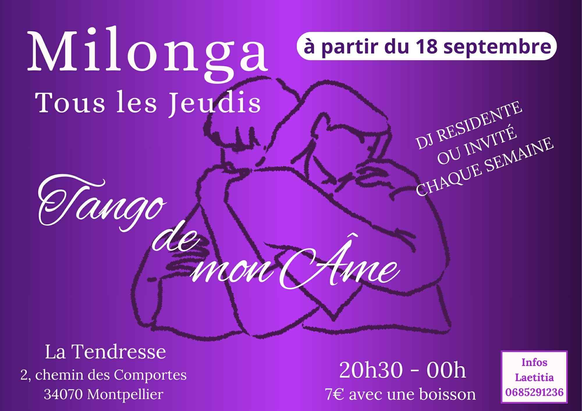 Tango de mon Âme vous invite tous les jeudis à partir du 18 septembre, de 20h30 à 00h, pour partager un moment de danse, de convivialité et de passion du tango.
