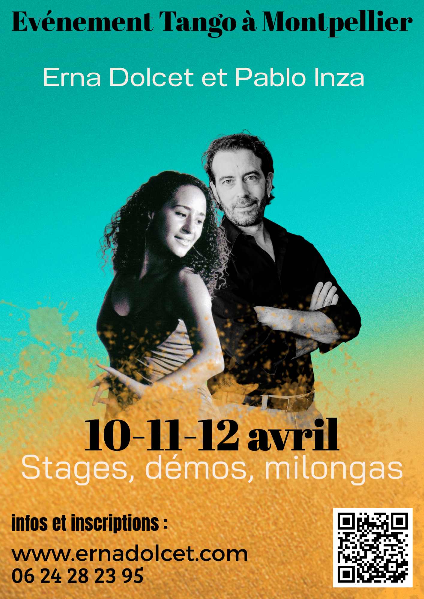 Pablo Inza et Erna Dolcet unissent leur poésie, leur créativité et leur pédagogie, pour une série de workshops toute en subtilité et musicalité, visant à faire progresser votre tango.
